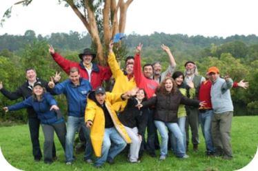 - Con un mini-circuito de 2 puntos, se les capacita a los navegantes en el uso del teléfono y la aplicación iKwest. Paralelamente, con los demás participantes se realiza una elongación, y cada equipo debe inventar un grito.